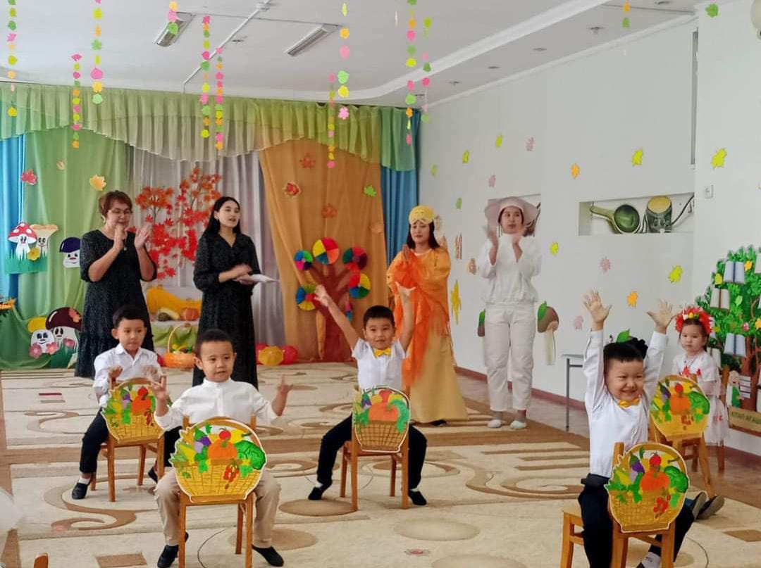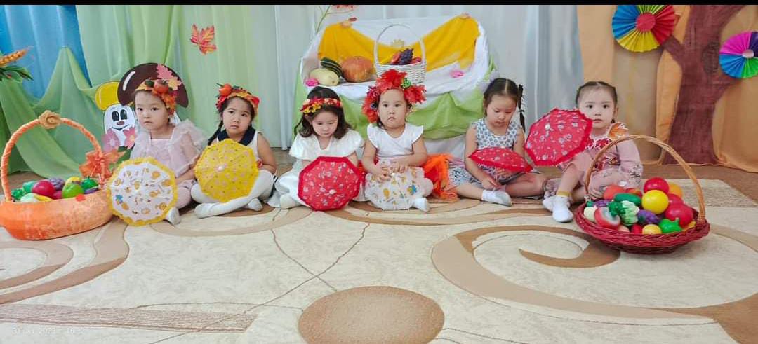 Мақсаты: Берекелі күз туралы мағлұмат беру. Алтын күз мерекесін өткізу. Балалардың күз туралы түсініктерін кеңейту. Балаларға мерекелік көңіл-күй сыйлау. Эстетикалық талғамдарын ояту.
