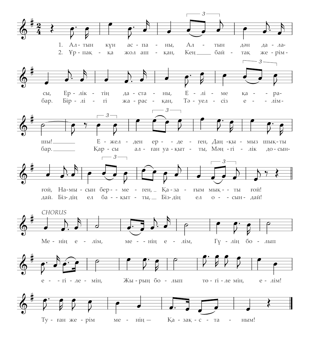 Музыкасы – композитор Шәмші Қалдаяқовтікі, сөзі – Жұмекен Нәжімеденов пен Нұрсұлтан Назарбаевтікі.